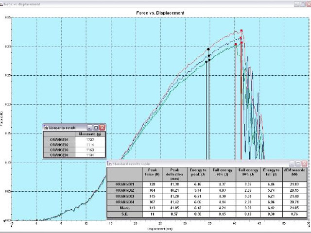 樹脂フィルム強度の品質管理。製袋用フィルムの衝撃強度を試験し、要求される強度が得られているか生産ラインの直近で試験。試験データからのフィードバックにより、適正な強度が得られるようリアルタイムで生産速度を管理します。 試験方法・規格 ISO7765に準拠したダート試験 対応機種 IM1F・IM1P・IM10-R・IM10-T 試験結果 生産ラインに衝撃試験機を組み込み、試験データからフィルム厚みが適正であるか判断し、生産速度を制御します。納入から10年近く経過した現在も試験データは生産管理に活用されています。 試験データ例 アプリケーション例トップへ