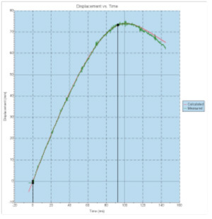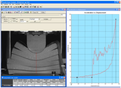 衝撃試験そのものは精度、計装化システムのダイナミックレンジ、バンド幅などが徐々に高度化、進化してきた。衝撃試験で測定されるのは一般にフォースと加速度であり、この測定方法は洗練されているといって良い。被試験体の変形も重要な指標であるが、衝撃試験のような高速試験では簡単に測定できなかった。イマテックではISOに準拠し初期衝撃速度と衝撃時の荷重値を元にしてサンプルの変位、正確には衝撃子の移動距離、を計算により求めることが可能である。この計算は正確に較正された荷重検出用トランスデューサとデータ解析ソフトウエアで達成している。計算式で衝撃試験時の変位を求めることについてはにわかには信じてもらえないため実証試験も行なっている。例えばEPP(Expanded PolyPropylene)の衝撃吸収試験でうず電流式のアナログ変位計と比較したデータが有る。圧縮衝撃試験のため、最大変位を正確に測定することが極めて重要であった。被試験体は一辺100mmの立方体で。衝撃速度1.11m/s、落錘重量295kgで行われた。変位計からのデータ(measured)と計算値(Calculated)との誤差は最大0.5%で、原因もはっきりしている。〈図:02〉さらにアルミの円筒(直径10mm、高さ10mm)での衝撃吸収試験では変位計にデジタル式のインダクティブエンコーダを使用し、衝撃速度6.7m/s、落錘重量7.6kgで測定が行われた。変位計からのデータと計算値との誤差は0.1%以内で、衝撃子がリバウンドするときに最大誤差が発生していた。